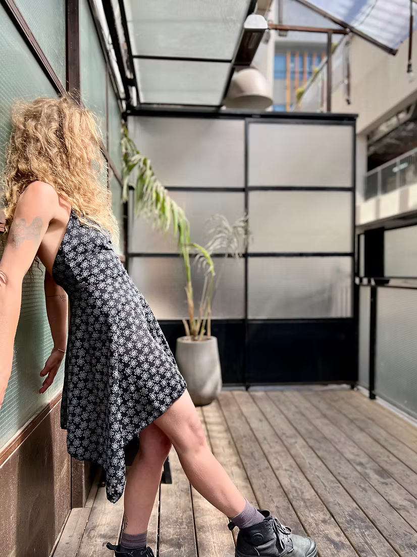 Soft floral fabric and airy flow make it a dream for summer days, festivals, beach walks, or barefoot garden magic.