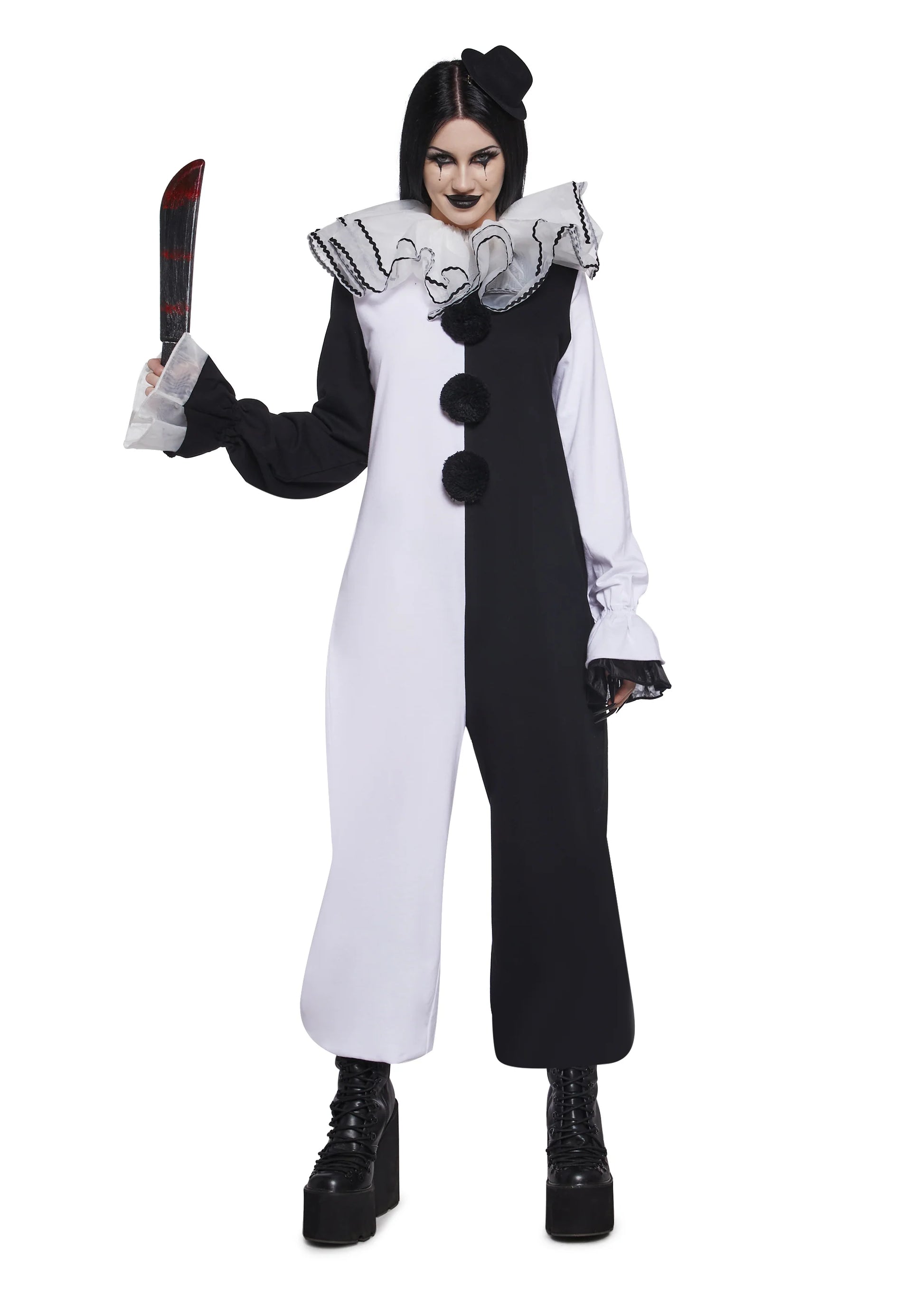 • Clown-style pom pom hat included