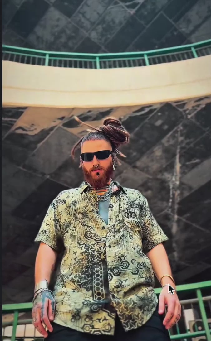 Genetic codes, ancient scrolls, dark magic spells and lost universal code. Meet our new DEA buttoned shirt. An impressive, airy shirt that screams art no matter where you look at it from, while maintaining the comfiest fit all in this one-of-a-kind short sleeved psychedelic shirt design.