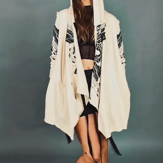 DELTA UNISEX Hood Cardigan Duster In Off-White