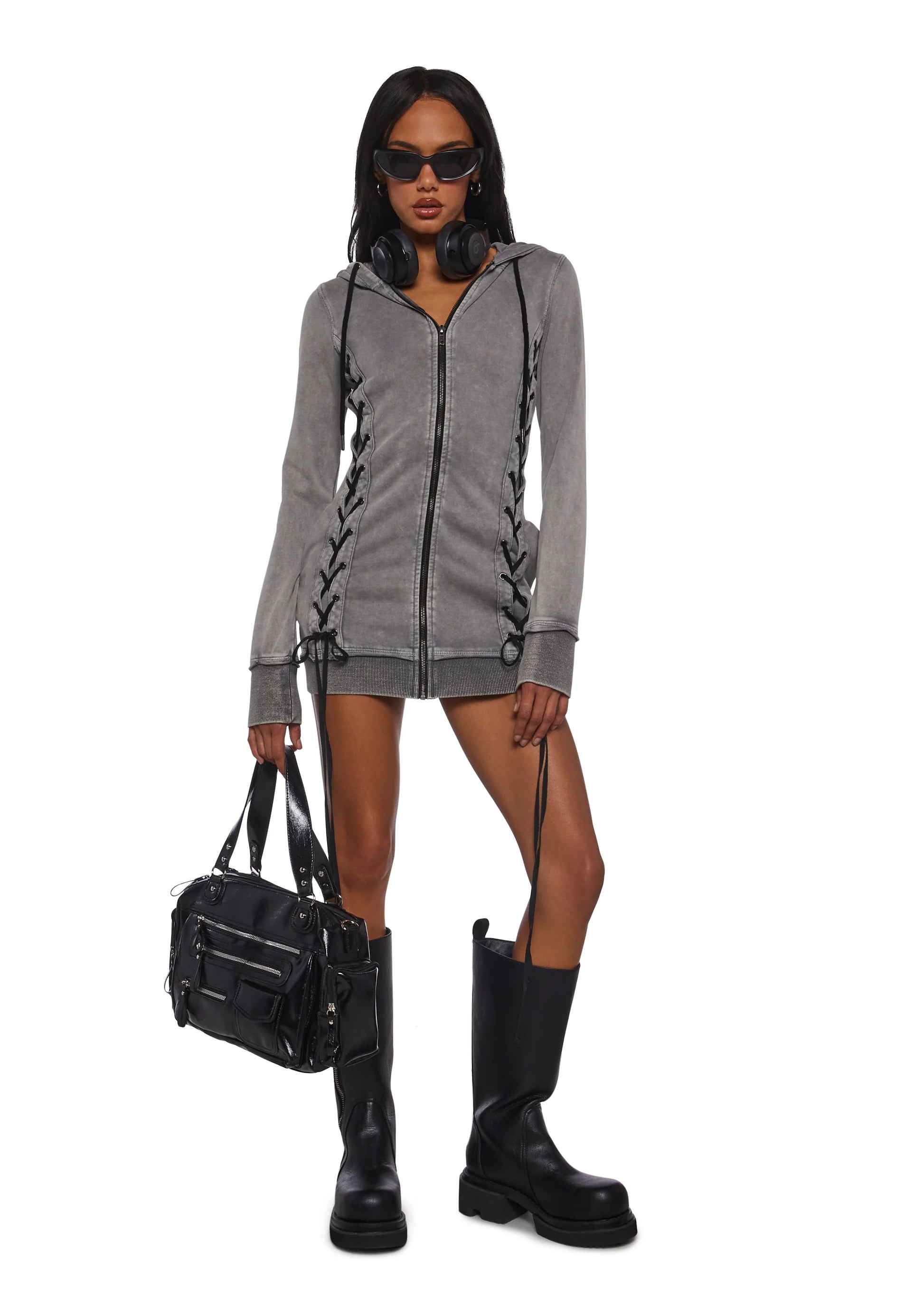 Downbeat Lace-Up Hoodie Dress