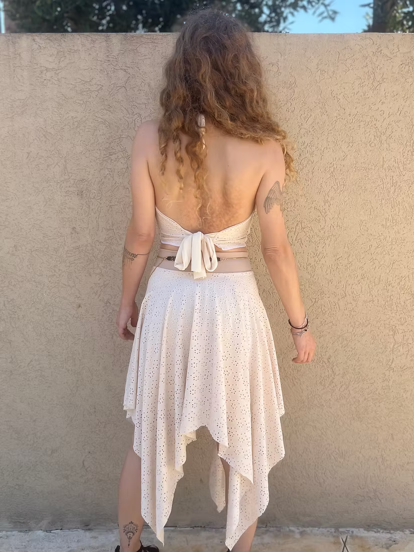The Dream Skirt in floral beige lace brings that feeling to life: romantic, flattering, and effortlessly versatile.