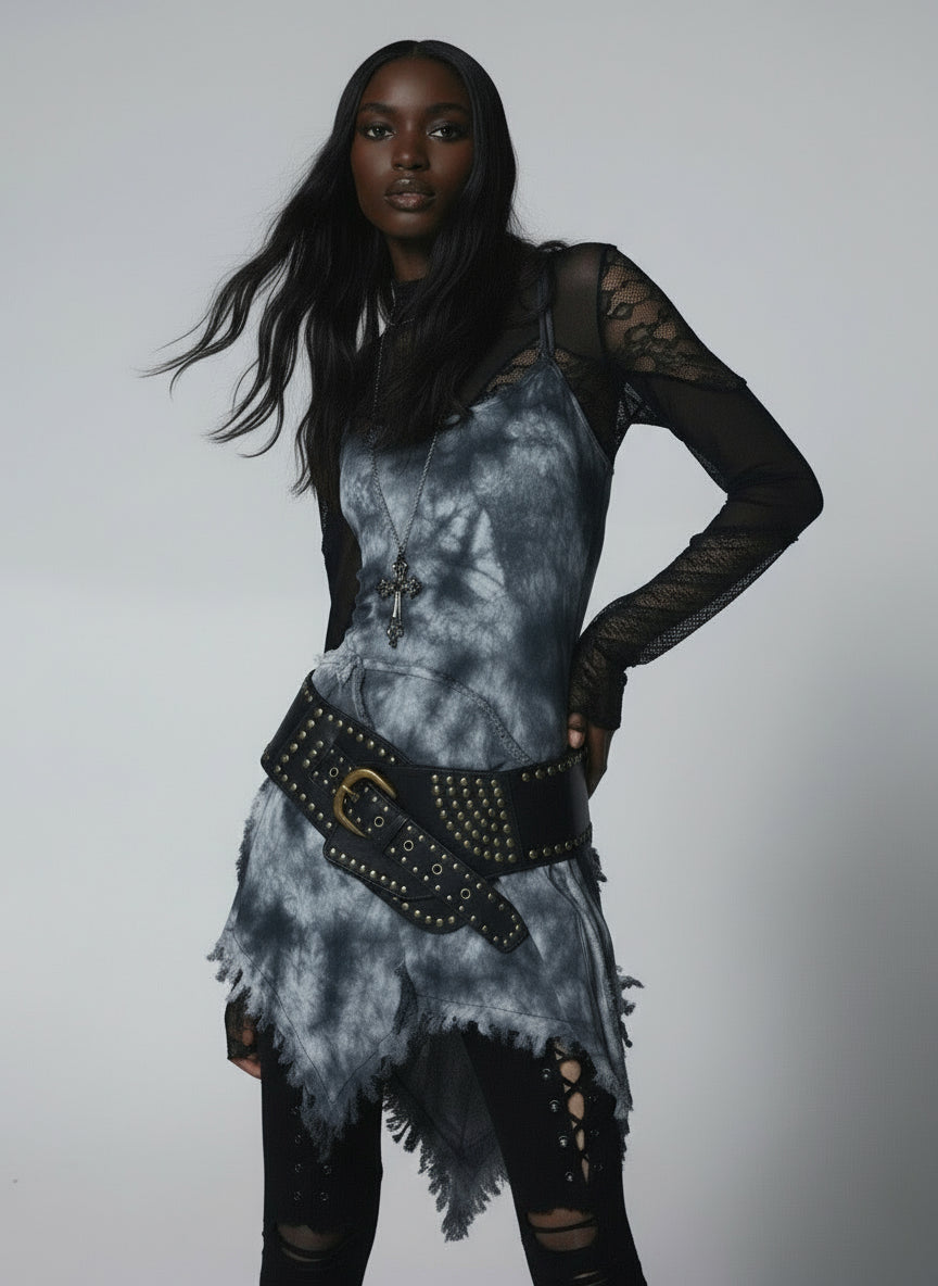 Viscose mini dress with an all-over floral tie-dye print, adjustable shoulder straps, and a raw distressed asymmetrical hem for added movement and flow. Non-stretch fabric with a fit-and-flare shape.