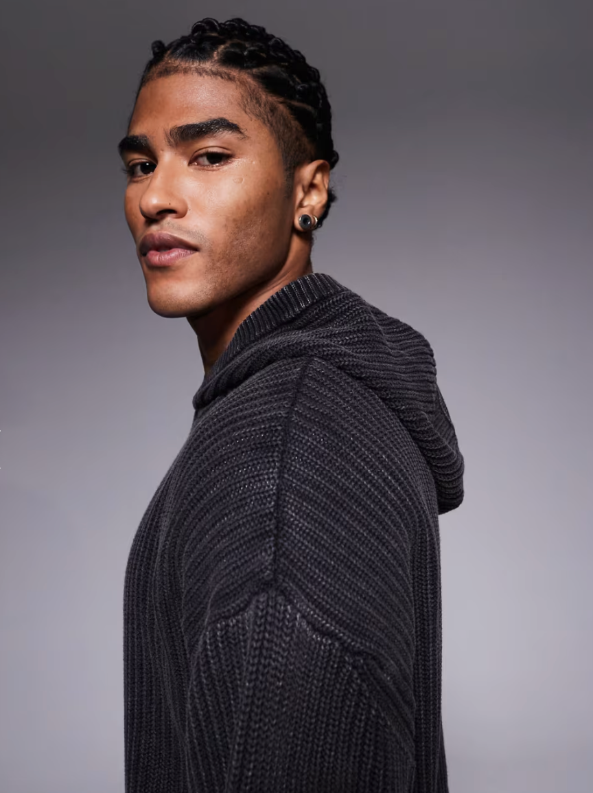 Good For Nothing Oversized Knitted Pullover Hoodie In Black
