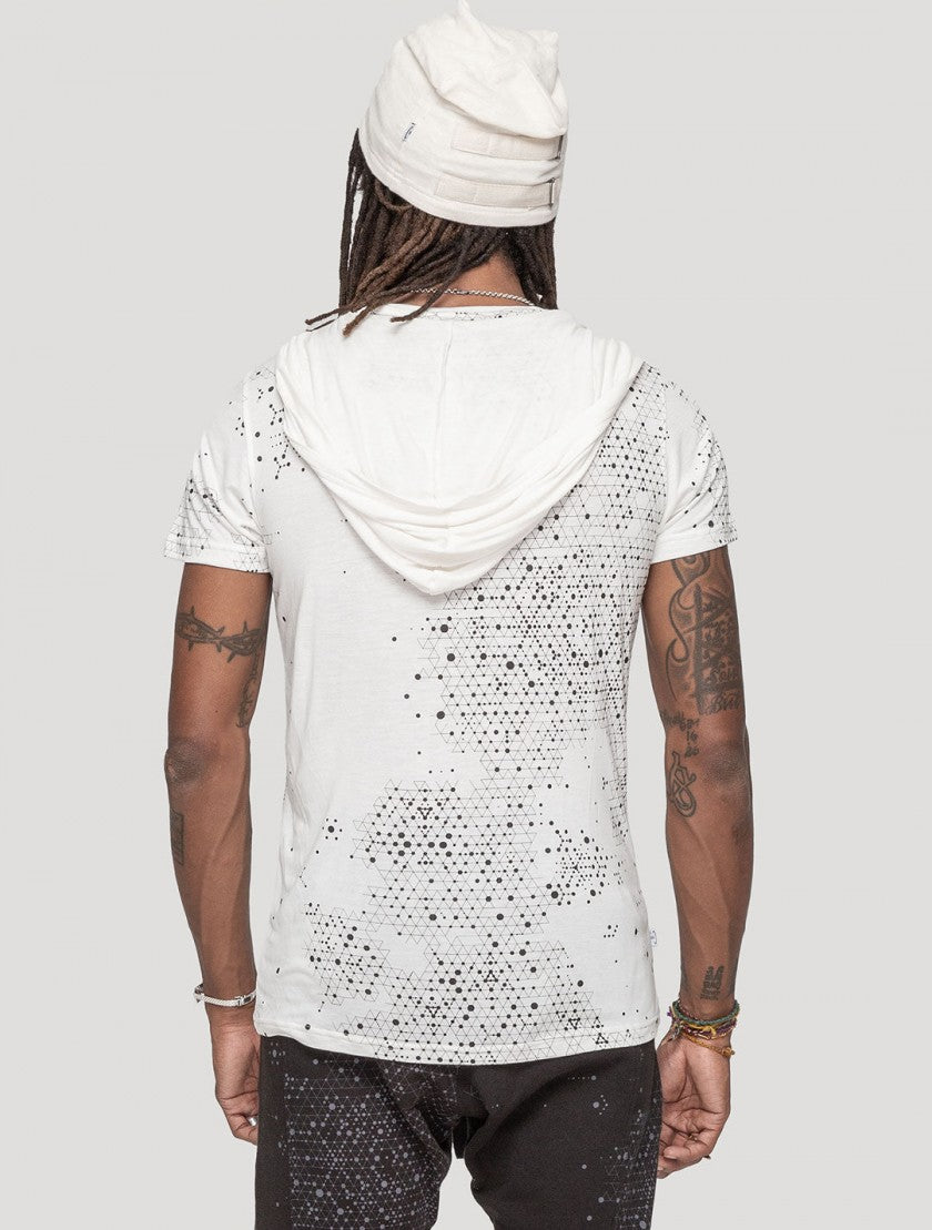 Our easy-going hooded T-shirt is revamped this season with artwork by visionary artist Ina Melnik. Ina’s water-based pigment print is inspired by inverted sacred geometry and the molecules that make up life.