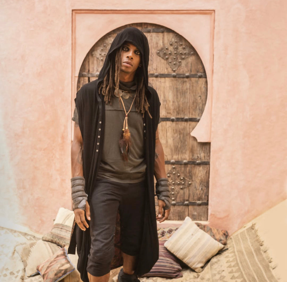 * Light & long vest with hoodie - perfect for tribal streetwear style flowy layering.