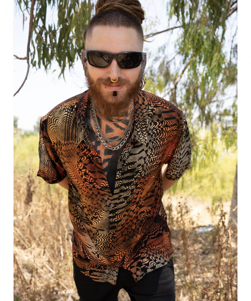It's time to get back to the sources of our beloved Acid with a special twist! meet AcidRenessanse- a new design dawn. This buttoned loose shirt can’t be ignored with its crazy psychedelic design that will sit comfortably for any event, festival and other dimensions