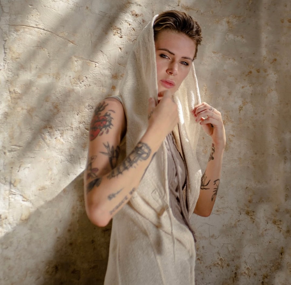 This streetwear dress is made from our double-knitted Slub 70% Cotton 30% Polyester. A double layer of internal cotton and external polyester, with a slub texture knitted together.
