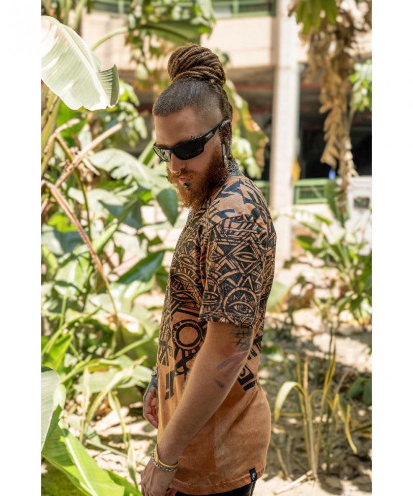 The tailored classic cut offers a sharp, contemporary silhouette, making the design a standout choice with its blend of minimalist elegance and unique, psychedelic flair.