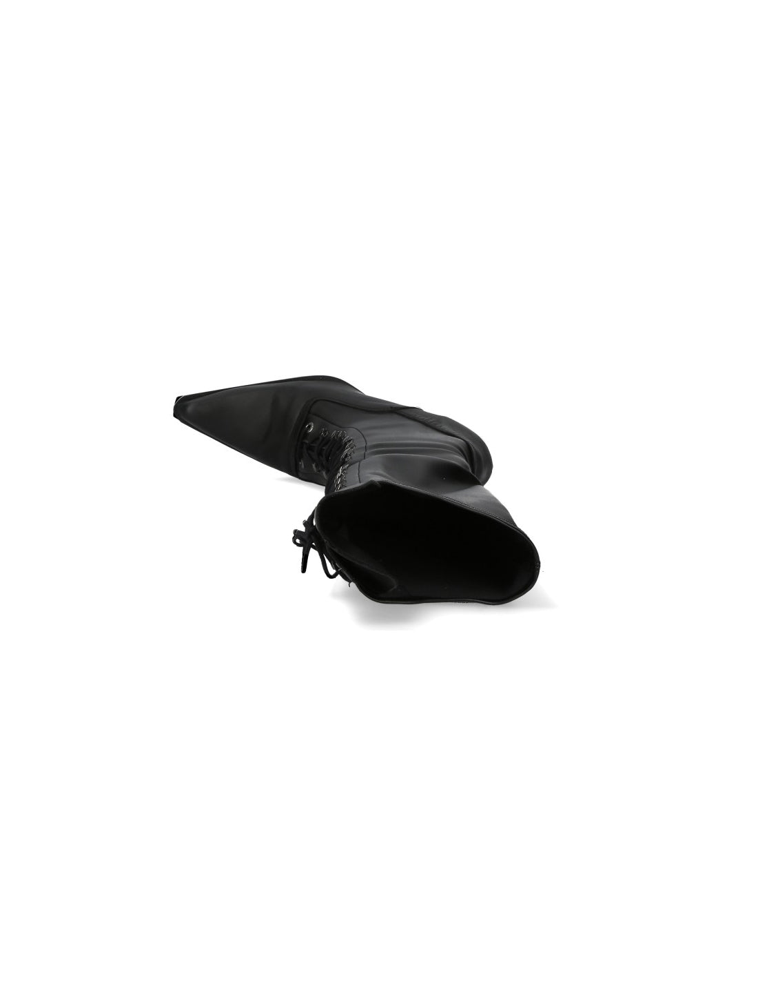 A bold high-boot crafted from genuine leather, fusing New Rock’s signature gothic-rock attitude with a dramatic high-heel silhouette.
