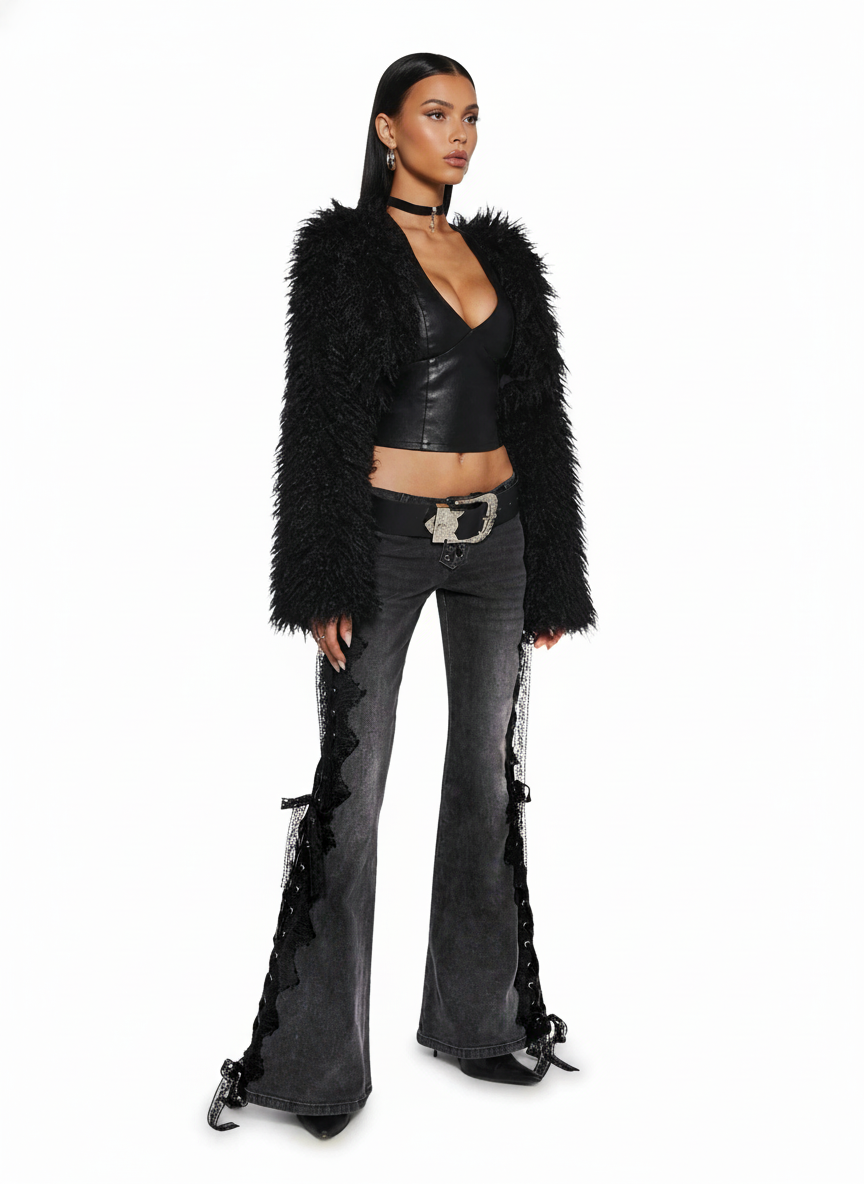 Finished with a lace-up front closure for a sculpted waist fit and romantic-meets-street rave energy.