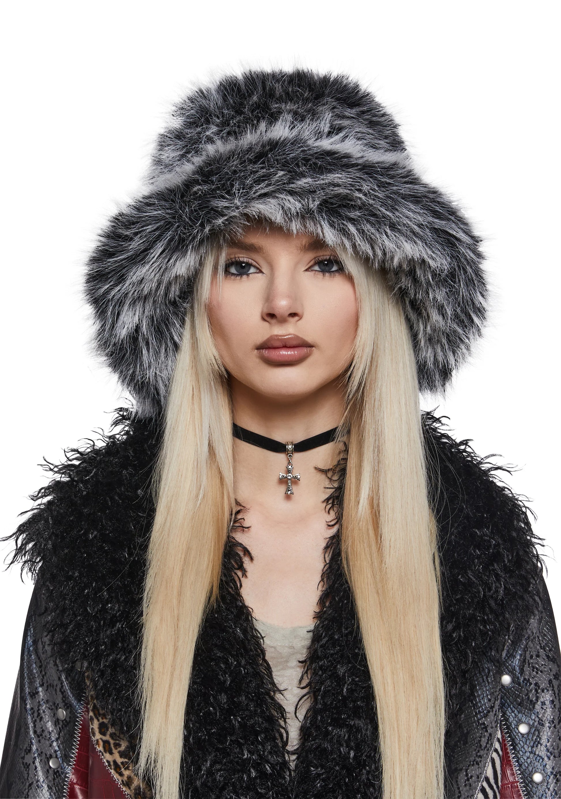MIDNIGHT FAUX FUR BUCKET HAT & SHOULDER BAG