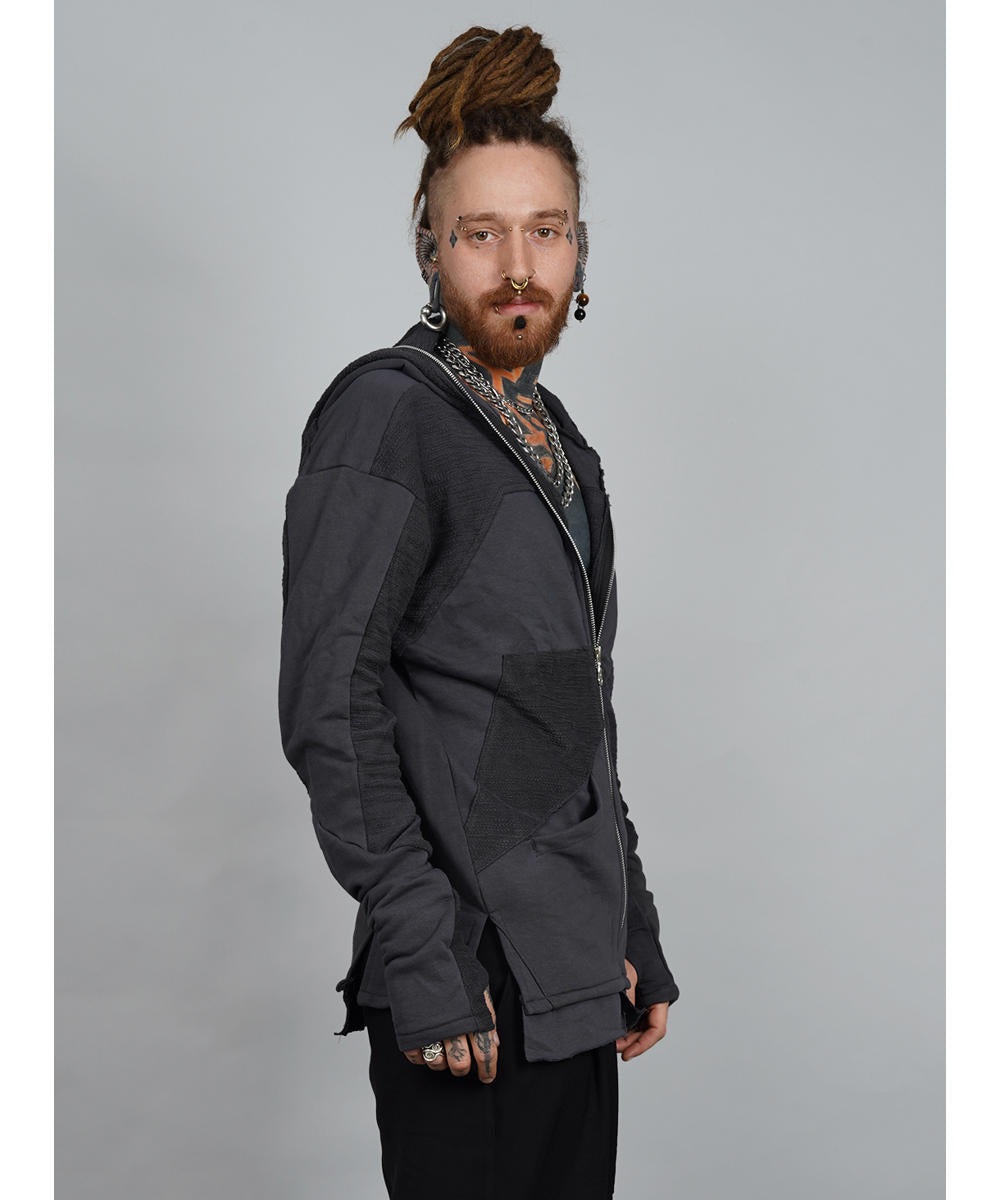 Ideal for those who appreciate a mix of understated elegance and bold, artistic design, the Neptune Dark Grey stands out as a truly unique garment.