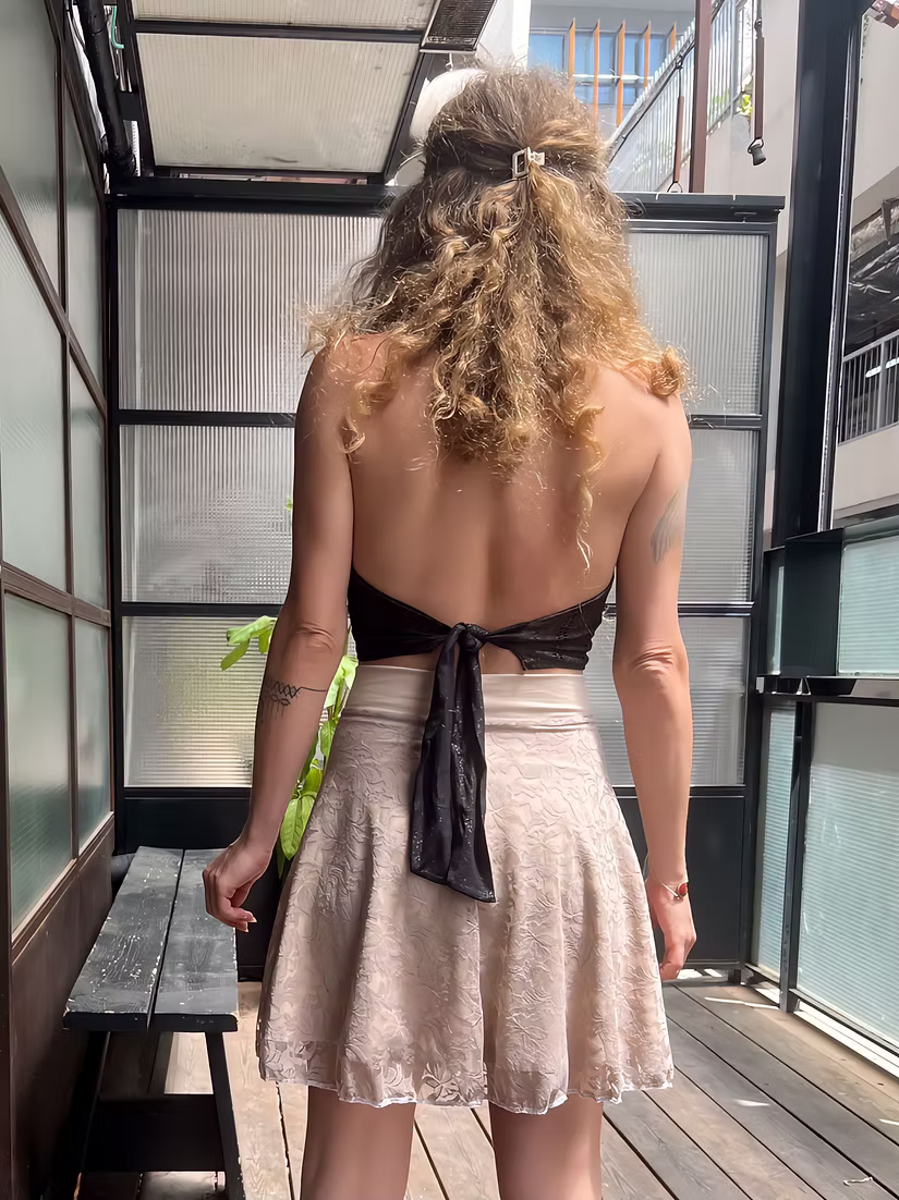 Wear it with a tucked-in shirt, a cropped top, or an open-back bralette — it transforms with your mood and your moment.