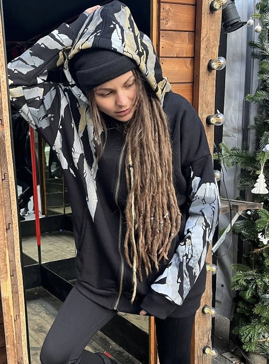 Deep in the fractalic mind - A small crack is being created which the light can pass through. where true devotion meets the deeper aspect of artistic freedom - the very own individual os being breave enough to spread his light all over the earth. The 'Ritual Spirit' Design - printed on a thick fabric hoodie which will protect your body in the cold seasons and chili nights. Every piece is uniq hand-colored
