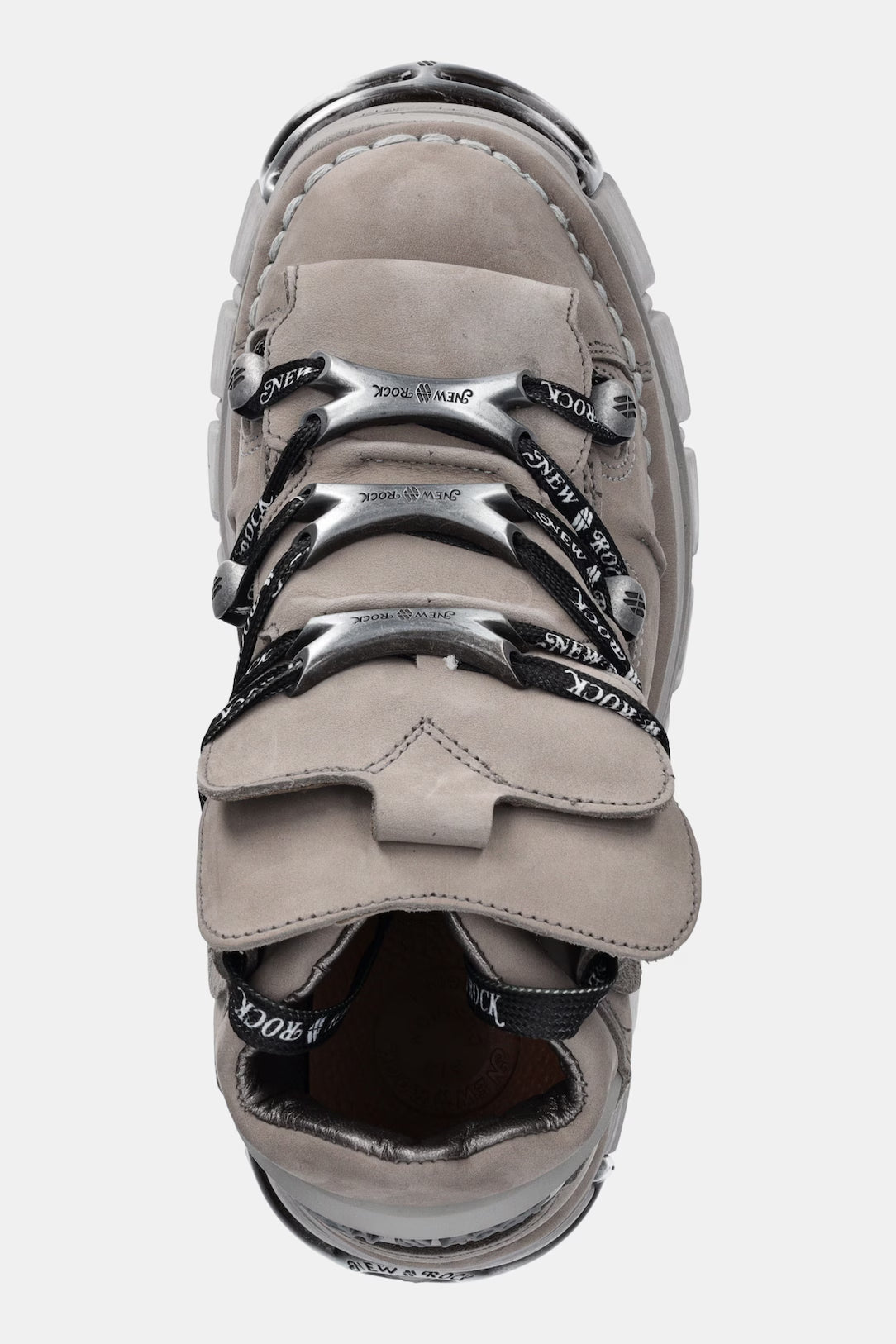 A bold ankle boot from New Rock’s METALLIC collection, blending gritty punk-rock attitude with premium craftsmanship. Crafted from genuine cowhide leather and mounted on a sturdy PU-platform sole, this boot delivers a dramatic silhouette and unwavering durability. The heavy-duty finish, metallic detailing and strong profile make it a statement piece for those who wear style with confidence. Ideal for streetwear, gothic outfits, or nights out — this is more than footwear, it’s attitude.