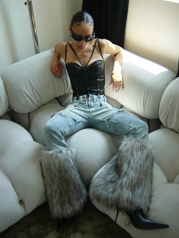 Structured vegan-leather corset top with pointed stud detailing for a sharp, industrial look.